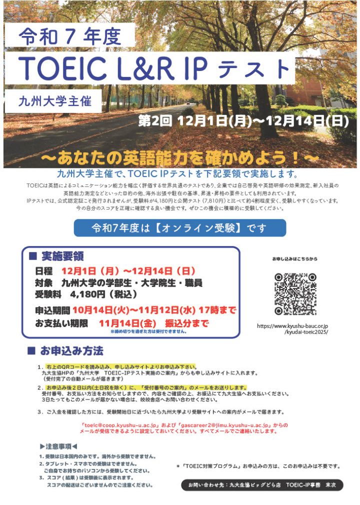 【Deadline: Wednesday, November 12】2025 TOEIC L&R IP Test