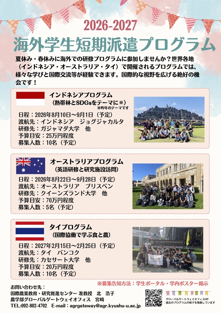 | Program Website | https://www.agr.kyushu-u.ac.jp/global/post-study/ |