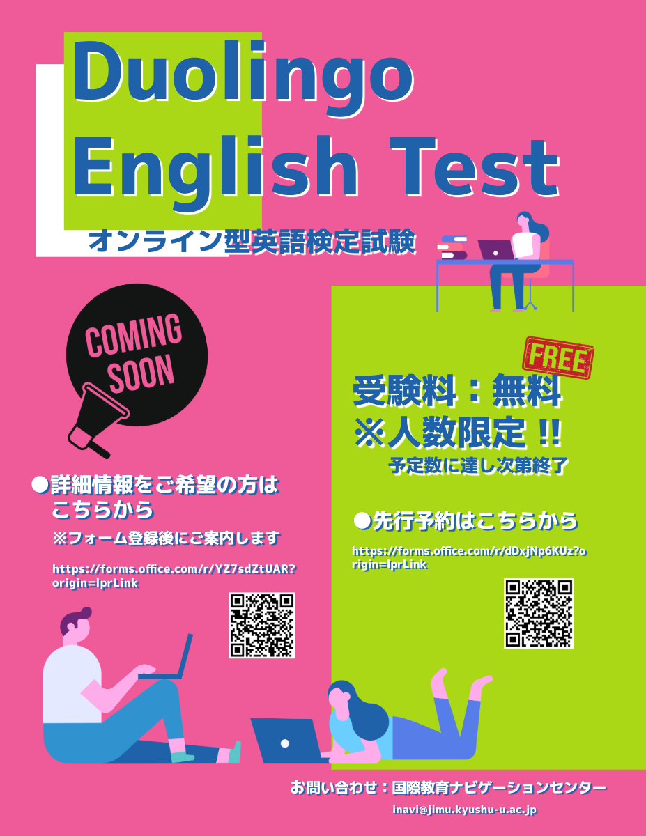 2026.4.16 publishedYou will have the opportunity to take the Duolingo English Test (an online English proficiency test) free of charge.