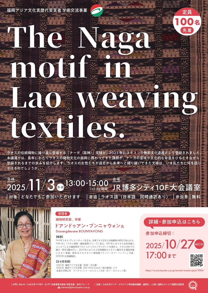福岡アジア文化賞歴代受賞者 学術交流事業「ラオスの織物に宿る神話~ナーガ文様の意味と未来